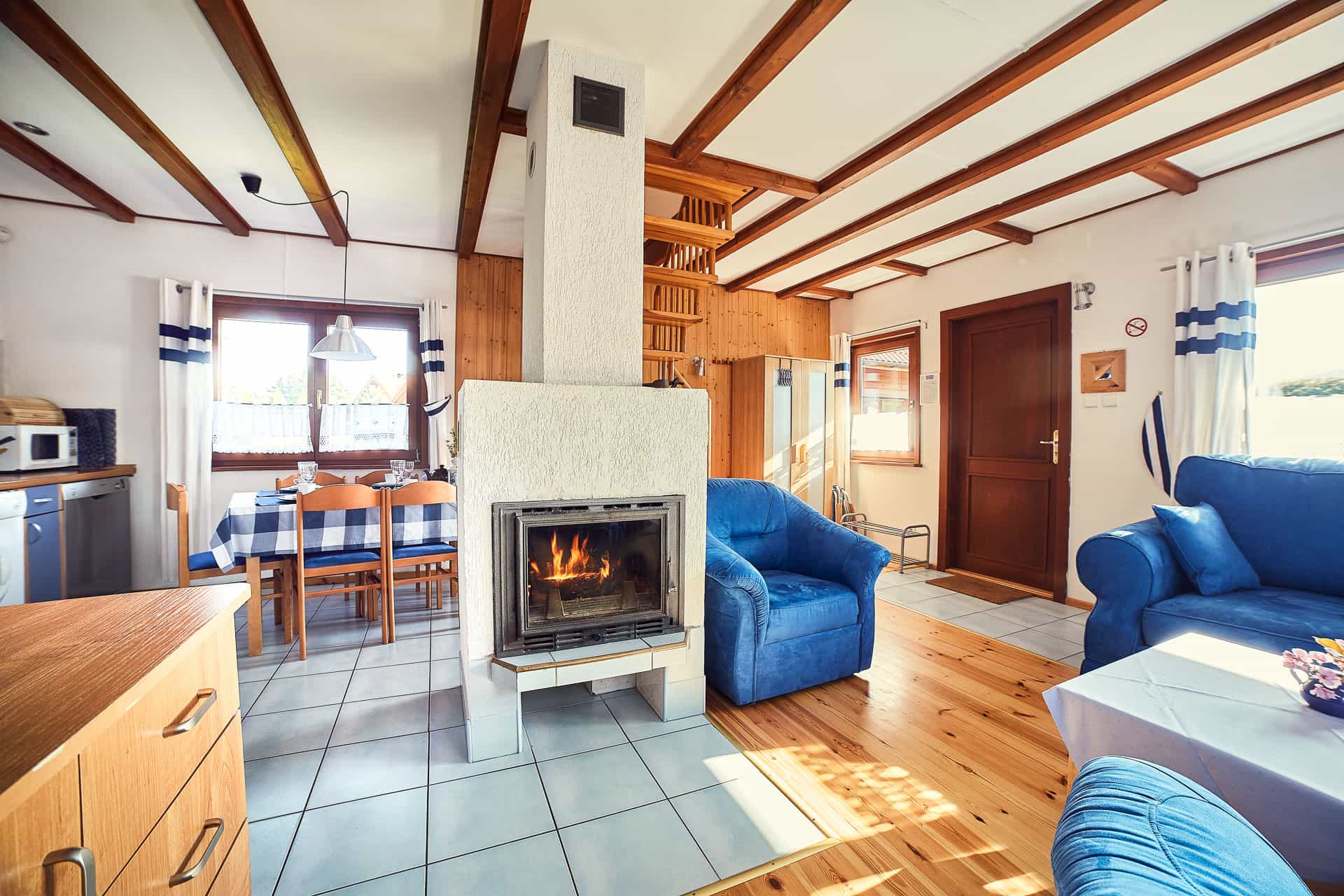- Komfort po połowach: Oferujemy całoroczne, ogrzewane domki z kominkami. Po dniu spędzonym na wodzie możesz odpocząć w przytulnym wnętrzu, korzystając z pełnego zaplecza kuchennego.